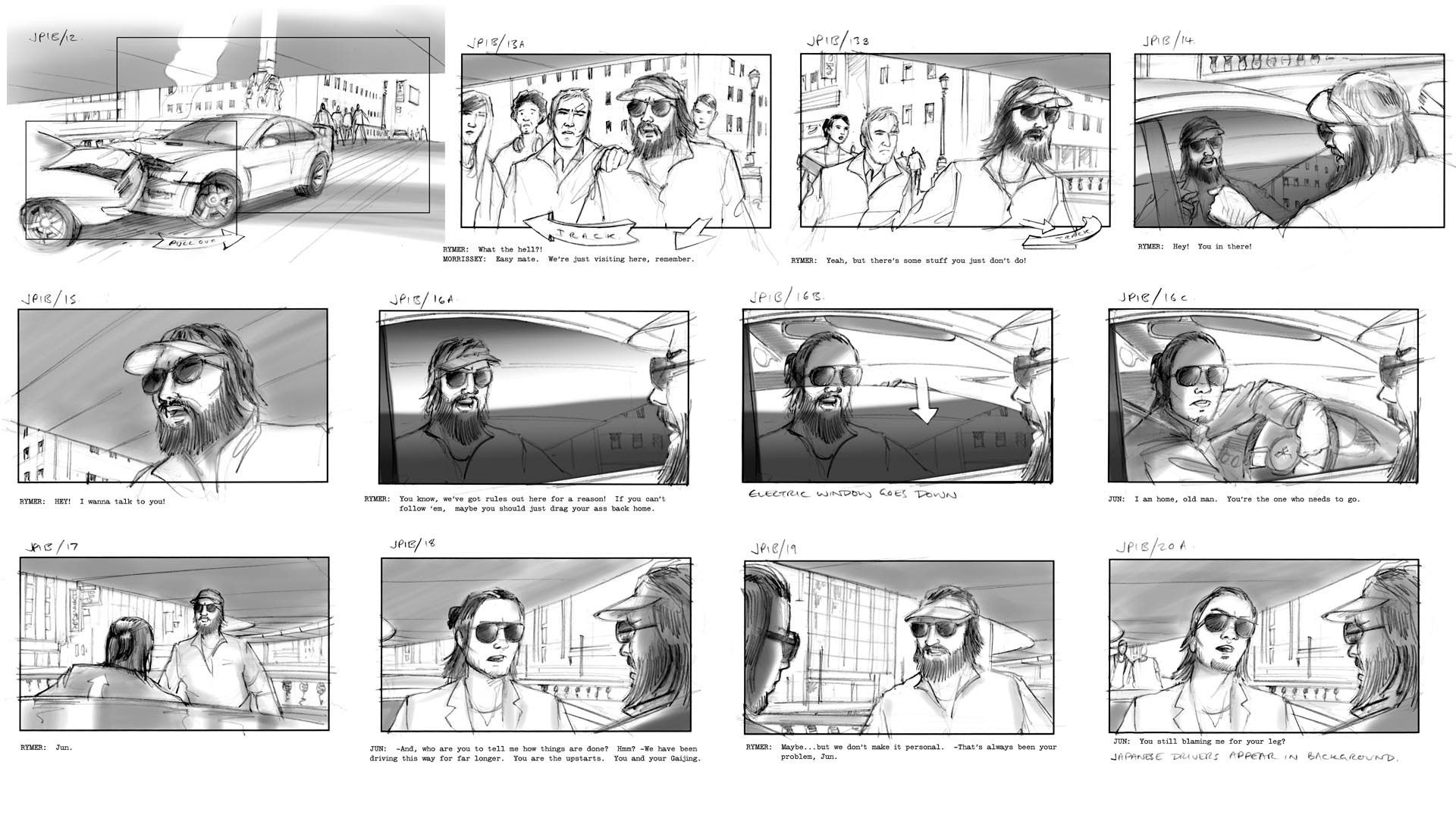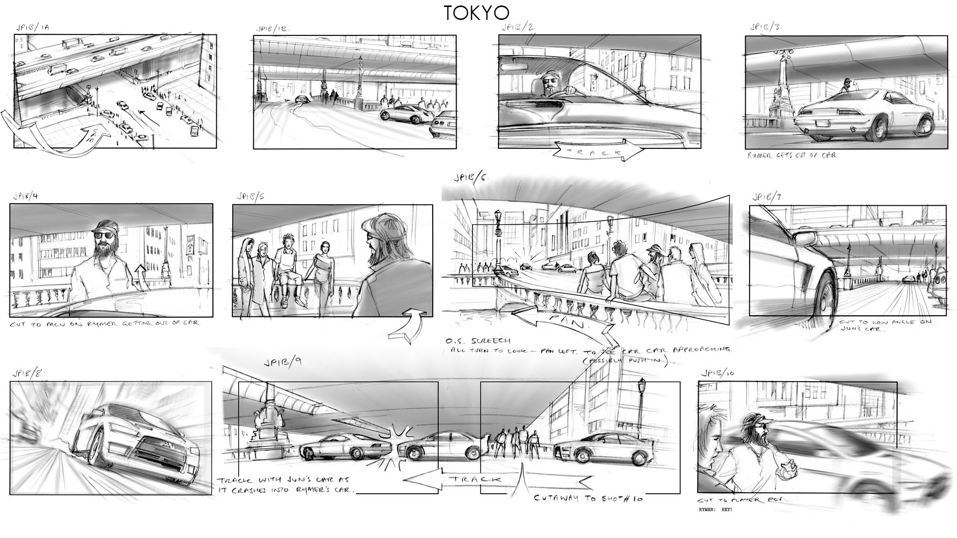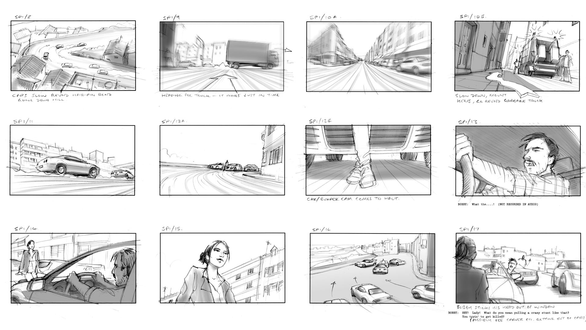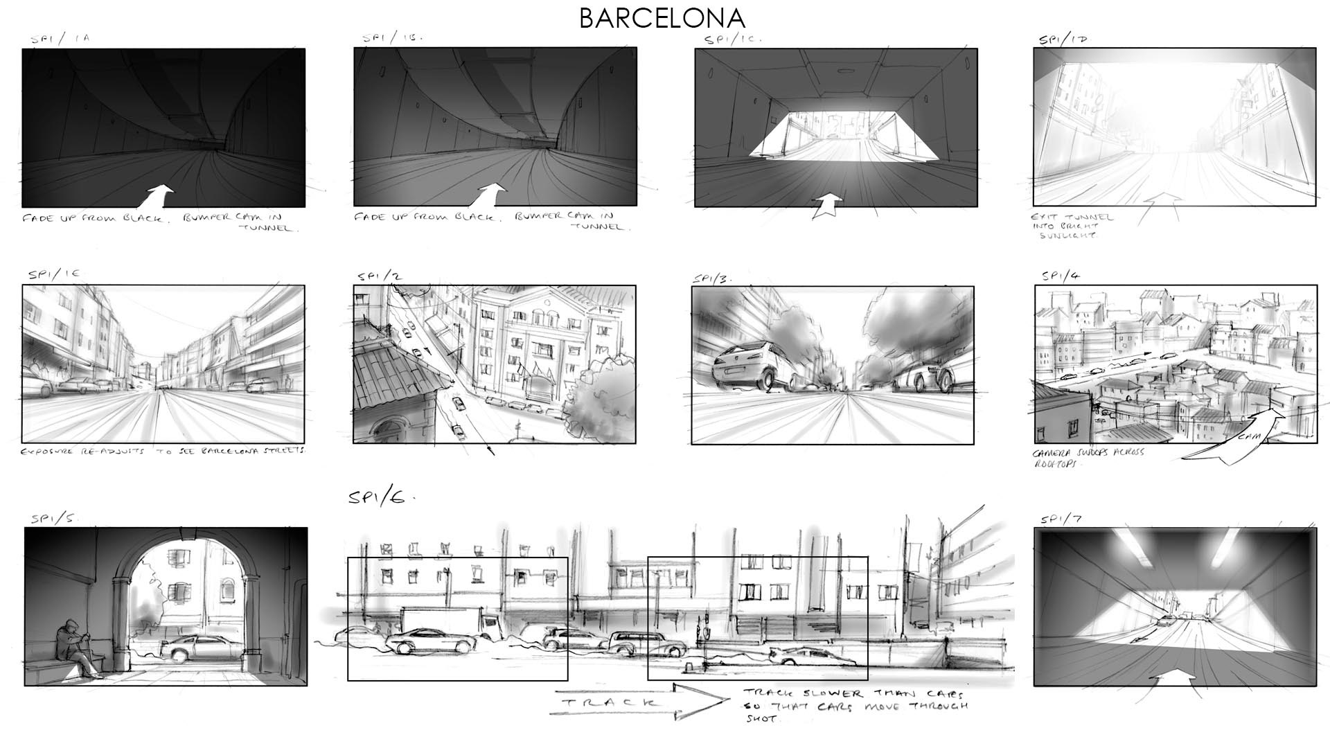 Video game cut-scenes/cinematics Activision/Bizarre Creations This driving game was originally developed with a narrative structure linking the race sequences. Unfortunately that didn't work out so well in testing and it was restructured as an arcade game. Nonetheless I do like these boards and enjoyed the job a lot as I essentially got to direct about a dozen of these sequences.